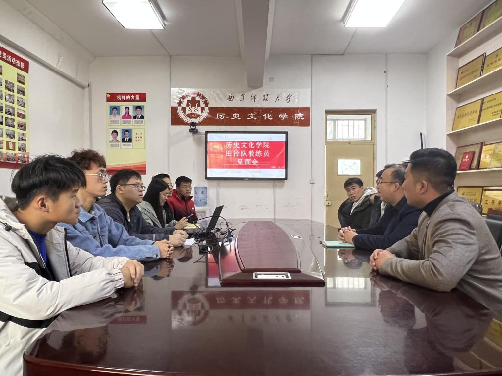 为加强学院体育建设,11月26日下午,工口动漫 于文史楼204会议室召开田径队教练员见面会暨体育部工作会议,工口动漫 党委副书记王建阳、辅导员董经出席会议,工口动漫 田径队教练员毛博熙、王光耀以及体育部全体成员参加会议。