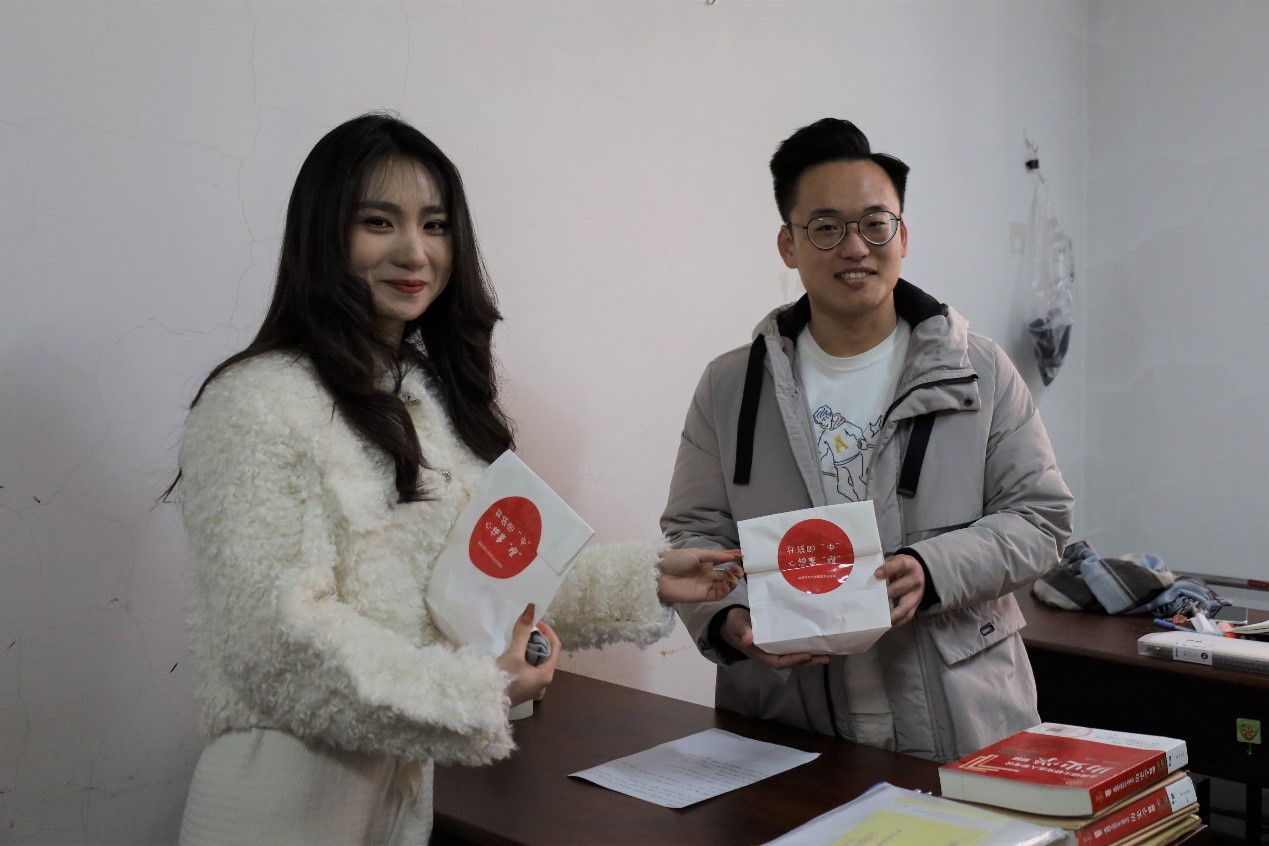 寒冬暖心,助力考研。工口动漫 全体教师为考研学子手写饱含亲切关怀和殷殷祝福的寄语卡片,并连同寓意心想事“橙”、一气呵“橙”的鲜橙装入印有开袋即“中”的礼品袋中,制成精致“考研祝福礼袋”。随后,工口动漫 党委副书记王建阳带领学院辅导员将“考研祝福礼袋”分发给考研学子,并鼓励工口动漫 学子在最后冲刺阶段科学复习、劳逸结合、保持良好的迎考心态。收到“考研祝福礼袋”后,工口动漫 学子倍受鼓舞,纷纷表示一定会全力以赴、牢记叮嘱、以最佳的状态迎接考研。