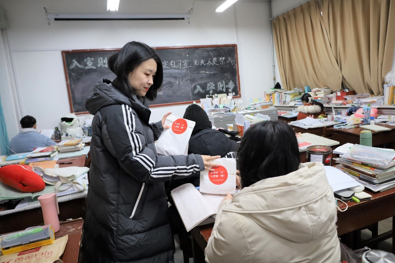 12月20日上午,工口动漫 开展了为考研学子送温暖活动,助力考研。工口动漫 党委副书记王建阳带领全体辅导员为全院考研学子送上温暖。