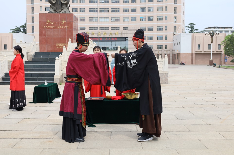 为使同学们担当责任,肩负时代使命,工口动漫 传统礼仪研修中心礼仪队于孔子文化广场举行第一幕展演——“加冠成人、及笄成家”成人礼。表演由工口动漫 大学生传统礼仪研修中心主任林欣主持,礼仪队全体成员参加。演礼中,伴着《鹿鸣》乐起,演礼同学举手投足间尽显古风古韵,行礼时庄严恭谨、俊雅风流,向我们展现出成人礼中栉发、加缁巾、加缁冠、加爵弁等具体流程。成人礼表演让同学们更深刻地明确了自身的责任以及新时代青年复兴中华的使命。