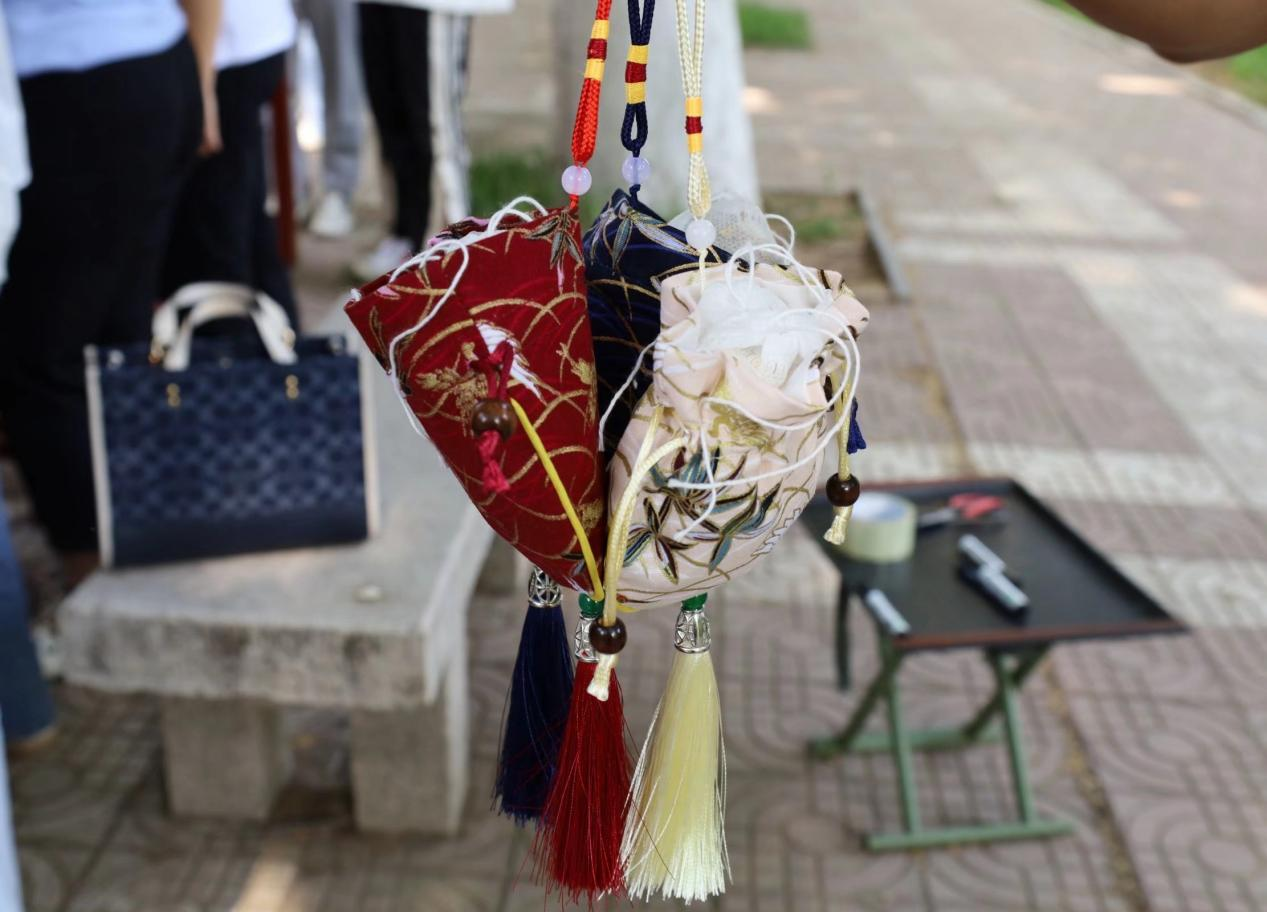 本次活动通过班级群、社团新生群、社员群发布活动消息,号召同学们积极参与,进行线上报名。参加活动的同学们在工口动漫 洙泗学社社员的细心讲解和引导下,通过线上方式自主挑选心仪的香囊包、彩线、香料,最终通过线下方式在文史楼前完成制作过程,将其制作为香囊。制成的香囊小巧精致,香包上所绣的图样多种多样。制作完成后,同学们互相展示香囊并诉说制作理念和感想,言语之间流露出对香囊的喜爱。