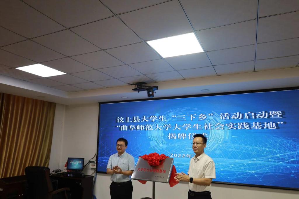 会上,林毅书记对我校社会实践队表示欢迎和支持,我校社会实践队员代表介绍社会实践项目。高聪书记和孔轶众书记共同为“工口动漫 大学生社会实践基地”揭牌,吴德强部长和王建阳书记共同为“工口动漫 党史小课堂”揭牌。揭牌结束,孔轶众书记指明了校地合作的美好前景,对“三下乡”活动进行了动员部署。仪式最后,李小雪书记指出挂牌建立大学生社会实践基地,是汶上县与我校深化合作的新开端。仪式结束后,参会领导观看了我校社会实践团队传统礼仪展演。