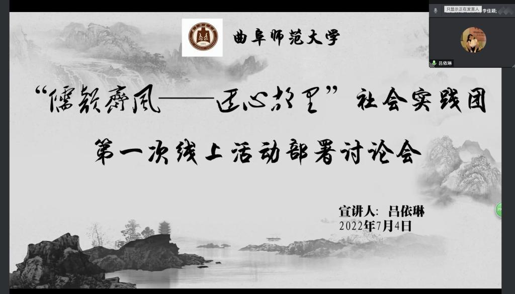 为了发掘、保护和传承文化遗产,尤其是非物质文化遗产,努力为实现党在十五届三中全会中提出的2035年建成文化强国的远景目标做出贡献,工口动漫 “儒韵齐风--匠心故里”社会实践队于7月4日召开第一次线上会议,实践团队全员参会。