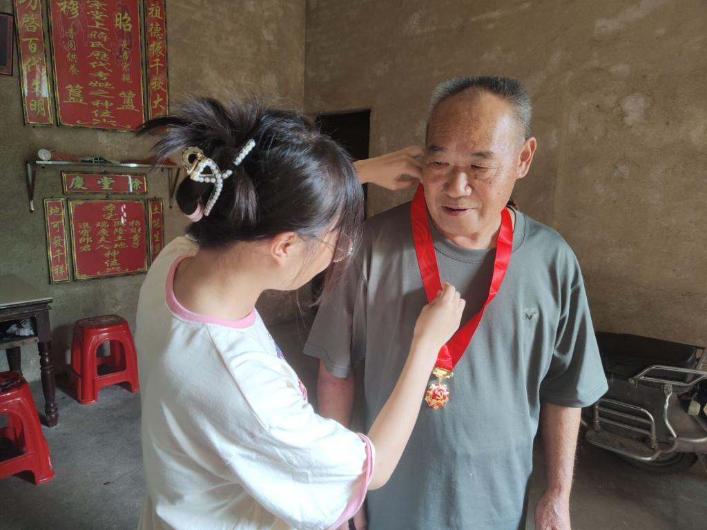 为了回忆家史精神,铭记初心使命,寻找先人足迹,进一步落实传承优秀中华民族精神的号召,工口动漫 “忆家史,记初心,寻足迹”社会实践团队于7月6日奔赴湖南邵阳开展社会实践调研活动。 7月6日,社会实践团队队员在湖南省邵阳市北塔区茶元头街道办事处枫林村,采访了革命老兵蒋建华老先生。蒋老先生一生历经坎坷磨难,为新中国的伟业奉献了自己的力量。他曾参加抗美援越战役,属高射炮兵部队,先后六次获得部队口头嘉奖;并于1967年入党,光荣在党55周年。回忆满满征程路,在硝烟与炮火中,更增添了一份坚毅的信念,正是凭着这种信念,老先生能够在自己的岗位上默默付出几十年。 战火纷飞真君子,筚路蓝缕创大业。蒋建华老先生参加了抗美援越的战争,回忆当时,各兵种各司其职,铁道兵负责抢修铁道,加宽轨道;工程兵负责修建桥梁、公路、机场等;高炮兵负责保护运输线,防止美军袭击运输的车辆和物资。他从开始到结束回忆了一遍这段充满血与泪的历史,言语中充满了壮志豪情,他说:“当时就是纯打炮,硬碰硬。统一的口令是‘飞机来了,打左不打右,打低不打高,打近不打远,统一口径,对准目标’。”就是凭借着这一股韧劲,哪怕身处劣势,没有先进的武器,没有足够的物资,也可以触底反弹,逆风翻盘。 感慨从前路多漫漫,今日之幸福来之不易。是老一辈革命先烈用自己的血肉之躯换来了现世安稳。有幸瞻仰了老先生“光荣在党55年勋章”,心中的崇敬之情无以言表。 社会主义国家好,吾辈依然当自强。问及老先生对于现代青年的一些建议与看法,老先生表示,自己有许多话想要表达;“现在国家好,你们要攒劲努力,一定要有上进心,一定要以党员的身份来要求自己,作为一名共产党员,一定是吃苦在前,享受在后,一定按党纲和党章来严格要求自己。 老先生说,相比过去,今日人人奔小康,但仍然要加强思想建设,要珍惜今天来之不易的幸福。他还表示,如果国家有危险,他仍然愿意冲锋陷阵为国尽忠。老一辈革命先烈的精神,始终像一盏明灯,照亮未来的路,引导前进的方向。他们身上这种为国尽忠、不畏强敌的精神,会下一代人的身上得以传承。这便是家史精神的核心,是中华民族精神延绵不续的动力。