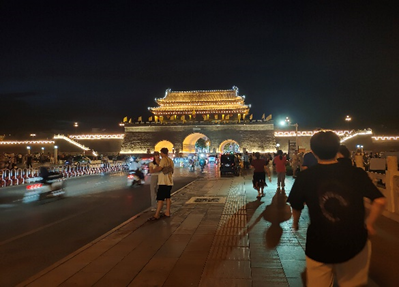 在考察过程中,实践队员了解到寿州古城有着悠久的历史文化,始建于宋代,于军事防御之外,还能具有重要的防水功能,历史意义巨大,对古代有诸多影响。而这样一座古城现如今也融入了我们的日常生活。古城利用它自身文化底蕴丰厚的优势,带动当地的经济发展,以及思想教育的发展。据实践队员在当地的调查,夜晚的古城人声鼎沸,热闹非凡,有不少居民在古城里散步和夜跑,这使原本高大伟岸的古城显得平易近人了许多。近年来所提倡的振兴传统文化的观念,使古城成为了一个标志性的地点,用现代词形容叫做“网红打卡地”,这在一定程度上促进了古城文化的传承与发展。
