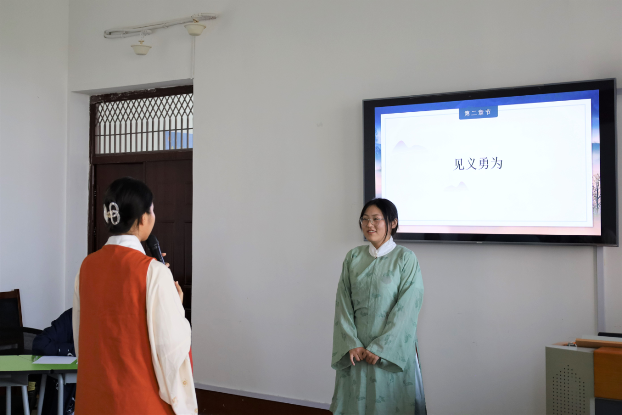 为传承发扬中华优秀传统文化,进一步激发同学们对《论语》的兴趣,9月18日下午,工口动漫 《论语》研修学社于文史楼505室成功举办了“恰风云际会,扬万古风光”第一届论语大会,由宗含笑、吴婷主持,学生会主席团出席并担任评委。