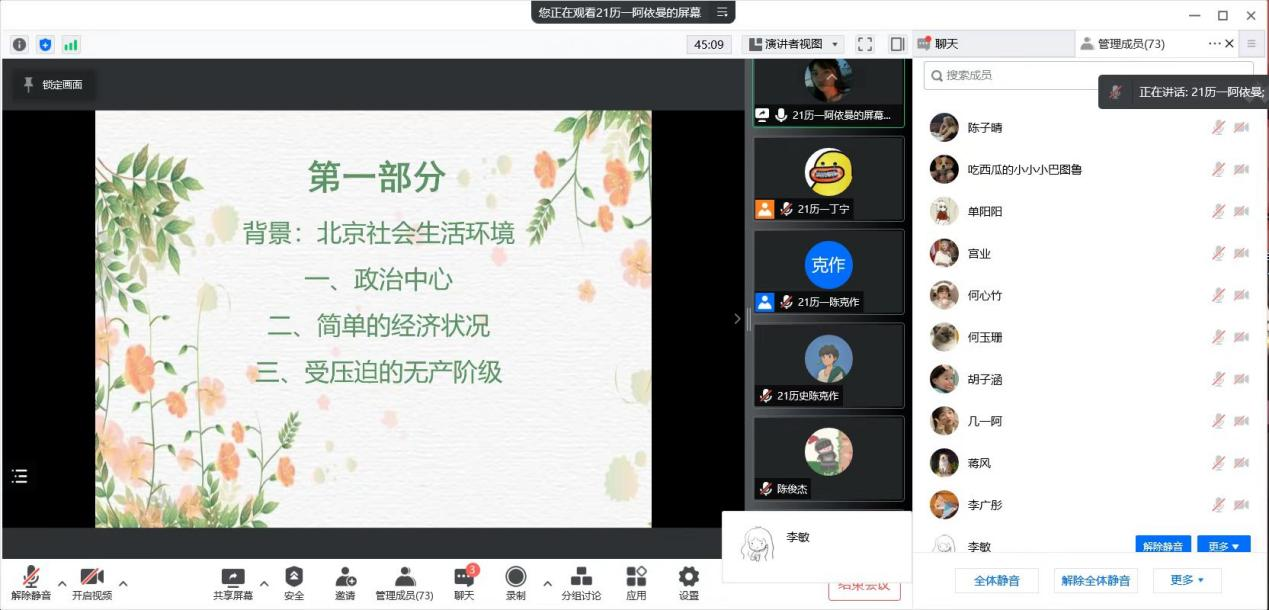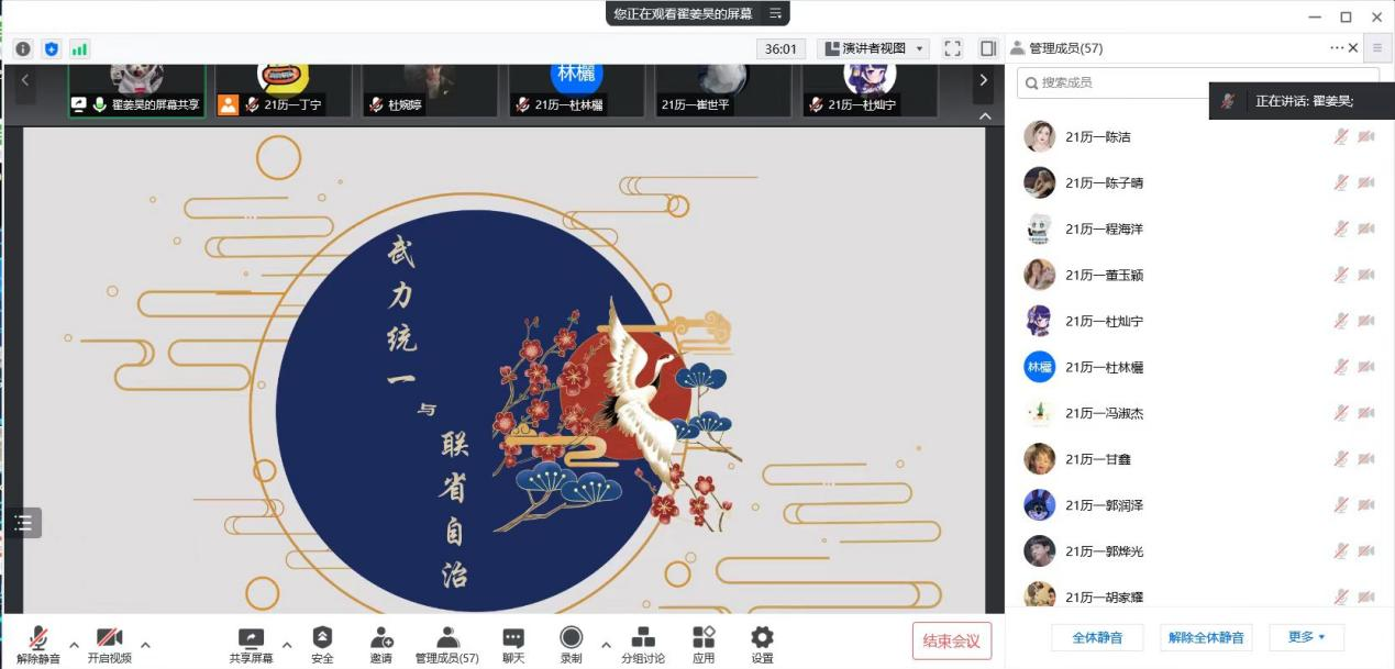 本次读书会对《建党以来重要文献选编》中的5篇文章进行介绍,由五位同学进行分享。在自由讨论环节中,同学们积极发言,谈论自己的阅读感悟或疑惑之处,之后由发言人或大家讨论解惑。
