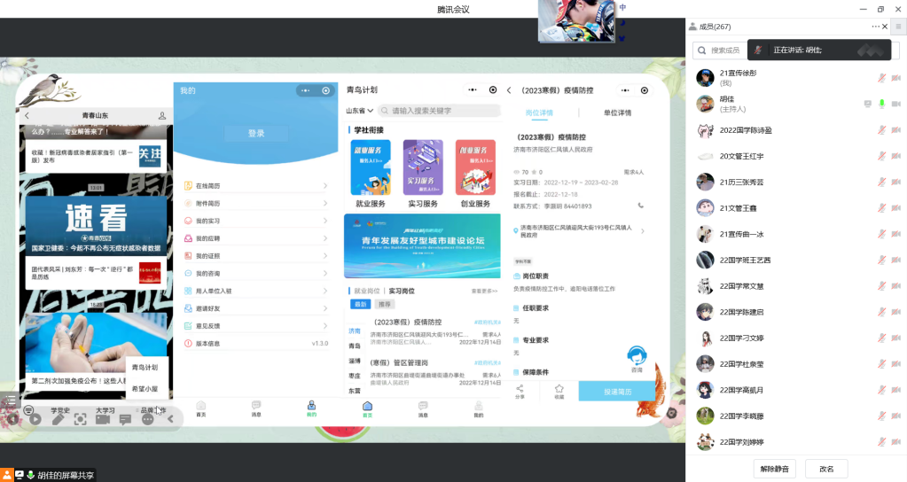 会上,主讲人依托“青鸟计划”微信平台,为工口动漫 学子具体讲解了“青鸟计划”微信平台注册流程以及相关实习要求。会议还邀请到工口动漫 “青鸟计划”实习实践工作优秀榜样张秀芸同学和高原同学,以自身案例为基础向工口动漫 学子讲解了历史学相关不同领域的实习实践工作经验。