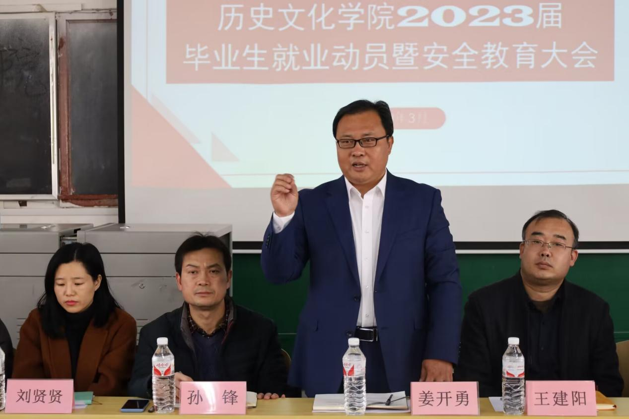 姜开勇对学院就业工作做出要求,他强调,学院始终把毕业生就业工作放在突出位置,就业对于每位同学来讲都是头等大事,希望同学们高度重视,一是要充分认识到毕业生就业安全工作的重要性,鼓励毕业生加强就业安全的学习教育。二是要明确自身的职业发展规划,树立正确的就业观和择业观,克服畏难情绪和依赖心理,尽早进入就业状态,开拓就业视野,实现精准发力。三是要把握好毕业季这段黄金时间,突出个人优势,拓宽就业思路,实现高质量就业。他表示,学院将为全体毕业生就业做好服务保障工作,为毕业生高质量就业保驾护航。