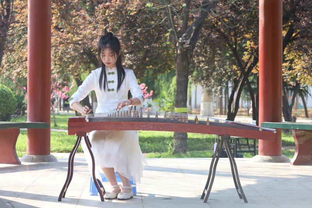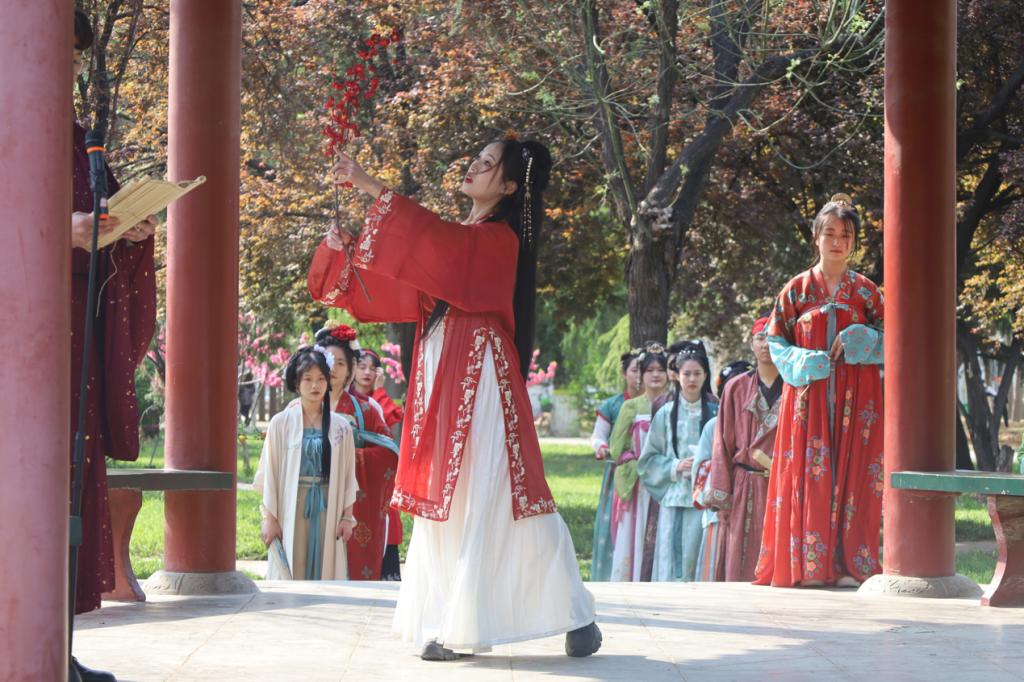 本次花朝节分为“百花節日,献礼花神”、“春日生机,感悟生命”、“簪花展示体验”、“赏红剪彩”四大部分。在“百花節日,献礼花神”环节,十二花神亮相,展示在献礼花神活动中征集到的礼物,随后进行祭祀花神典礼。在“春日生机,感悟生命”环节,受邀同学们向大家表演古风歌曲、舞蹈等节目。在“簪花展示体验”环节,洙泗学社与文协社团展示社员制作的各类发簪、璎珞、荷包等各类手工作品,供大家学习购买。在“赏红剪彩”环节,观众们在摊位上体验剪纸制作,并将剪好的作品挂在树枝或绳子上上进行祈愿。整场活动井然有序、异彩纷呈,吸引众多同学驻足观看。
