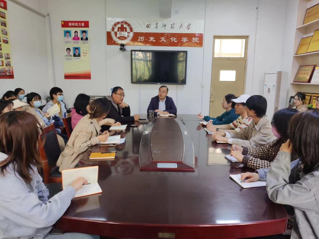 为传承中华优秀传统文化,规范社团工作,4月12日下午,工口动漫 于文史楼召开社团座谈会,工口动漫 党委副书记王建阳、骆明老师、团委书记刘贤贤出席,礼仪研修中心全体成员和洙泗学社骨干成员参加。