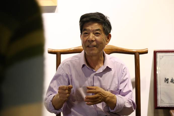 书店街,始于北宋,历史悠久。初步入此街,书店画坊鳞次栉比,笔墨字画充盈其中,而实践队员们所找寻的开封木版年画博物馆就藏匿其中。开封朱仙镇木版年画传承人任鹤林老先生带领实践队员们参观了年画博物馆,馆内四壁悬挂着任老先生从各地搜集而来的年画,这些年画主题各异,神态鲜活,但单纯明快的色彩表达了广大劳动人民希冀五谷丰登、吉祥如意等美好的生活期待。实践队员们跟随在任老先生身后,听他讲他与木版年画的不解之缘,“我1970年毕业于河南大学美术系,学的是现代的美术教育,也是因为工作的需要我才涉及木版年画搜集和研究这个行业。全国有很多的年画产地,像天津的杨柳青、苏州的桃花坞、山东的潍坊,人家都保存得非常完好,但是我们河南至今没有发现一张老年画。”实践队员不禁问道:“您的主要工作不正是挖掘整理传统木版年画吗,没有传统年画您怎么去研究传统年画,又怎么去创新,这不是陷入了‘无米之炊’的境地了吗?”任老先生指着一副“五子夺魁”图说道:“我接手这份工作之后就将眼光放在了全国的范围,这幅年画就是属于我们找到的第一批,我记得我当时跑了四趟上海鲁迅纪念馆,馆长才让我进去拍照,我拿相机的手都在抖啊,回来之后我们就按照照片刻印了这些年画。”