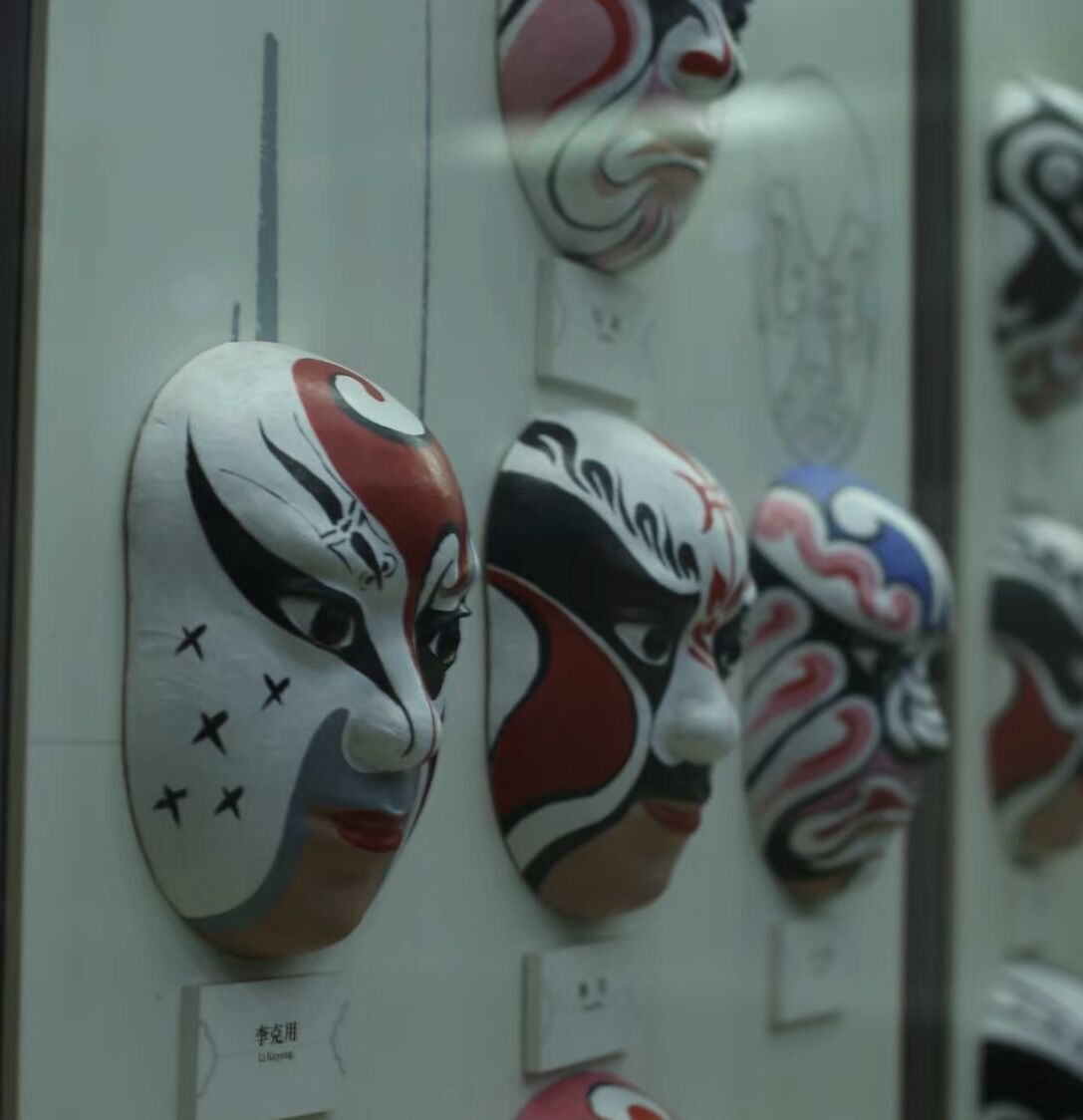 实践团于7月6日下午前往位于重庆市渝北区的川剧博物馆。这座文化悠久的博物馆藏匿在城市车水马龙的图景里,实践队员一踏入博物馆的馆内,其宁静的氛围便取代了喧闹而成为了城市的主色调。实践团为了更好地理解川剧发展的前世今生,便主动邀请了川剧博物馆馆内的专业人员冯老师来为实践队员们进行全程的讲解。在冯女士的引导下,实践队员们首先看到的是各式各样的川剧面具,有的红黑相间,表情狰狞;有的镶蓝为主,纯白为辅,表情中看不出端倪却又好像意味深长。这些不同种类的面具大部分用于表演川剧中最为特色的戏份,乃是川剧变脸。冯老师告诉实践队员们:“变脸有大小变脸之分,大变脸便是要全部变脸,而小变脸则只需局部改变即可,其中根据变脸种类和效果的不同,变脸的具体手法与技巧亦有其不同。”实践队员们对变脸所要达到的目的很是好奇,在冯老师的讲解中,变脸是川剧艺术中塑造人物的一种特技方法,表演者通过变脸来表达人物内心的改变,这样的改变有时候是难以用动作或语言来呈现的,所以表演者便通过对于角色面部形象的改变来告知或暗示观众角色本身内心情感的发展。