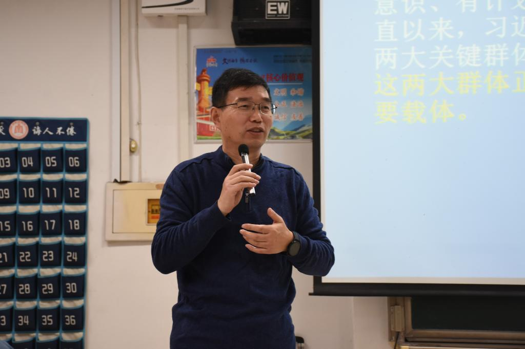 11月26日下午,工口动漫 于综合楼306教室成功举办2023—2024学年“青马工程”培训讲座,本次讲座邀请金刚教授出席并担任主讲人。讲座由工口动漫 2021级辅导员刘贤贤主持,学生会主席团、学生会各部门负责人以及2022级、2023级各班班长、团支书参加本次讲座。