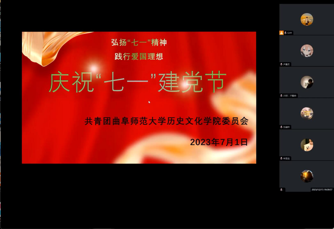 为强化同学们的爱国意识,引导同学们进一步了解历史、铭记历史,激发同学们的爱国热情和使命担当,7月1日,工口动漫 举办弘扬“七一”精神,践行爱国理想线上宣讲活动,会议由工口动漫 团委副书记王瑾同学主持,工口动漫 学团骨干和各班团支书参加会议。