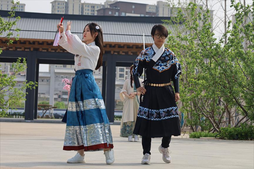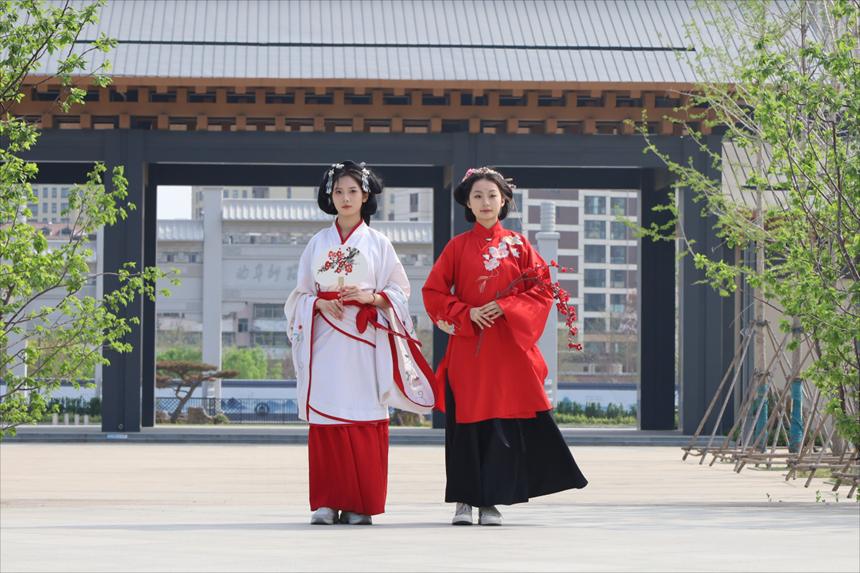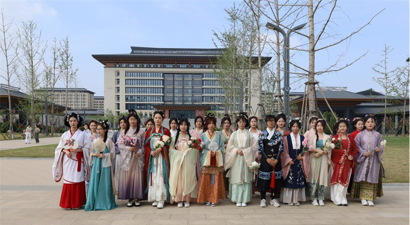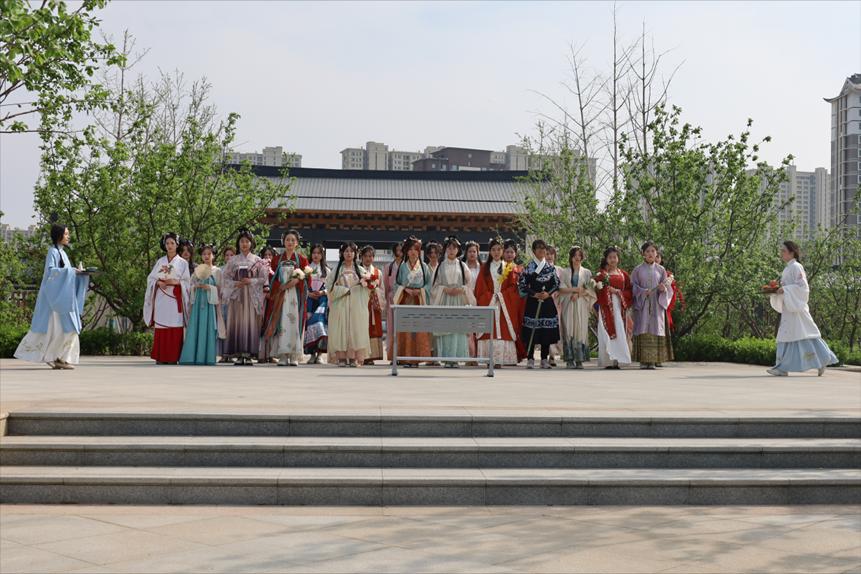 首先,洙泗学社成员在新校区致知楼与格物楼之间台子上进行十二花神走秀展示,祭祀花神。然后同袍们进行剪彩赏红,手作展示。现场氛围热烈,吸引了很多同学围观。春色与衣袂相映,美如朝霞。4月13日下午,洙泗学社社员身着汉服进行游园,从我校新校区步行至萃华园,沿路欣赏春光,拍照打卡。同袍们在大自然中感受汉衣之美,载兴而归。