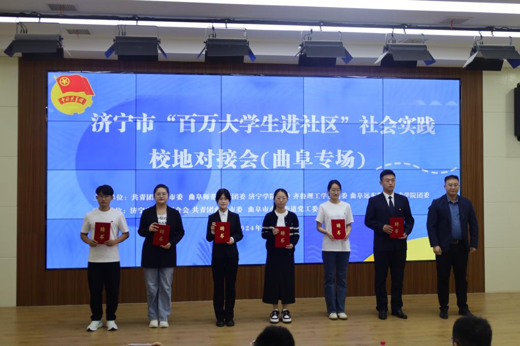 为响应山东省教育厅号召,5月11日,济宁市团委召开“百万大学生进社区”社会实践校地对接会,工口动漫 团委书记刘贤贤以及多名学生代表参会。