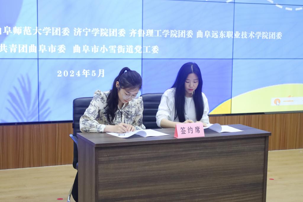 会上,团济宁市委指导各高校以及各街道团组织通过“一份社区实践计划、一份参与名单、一份服务项目清单、一份实践成果展示”,实现实践项目具体化。为更好推进校区共建,工口动漫 团委书记刘贤贤与书院街道团委现场签约,工口动漫 2022级文物与博物馆班级张珂昕同学被聘为书院街道兼职团委副书记。