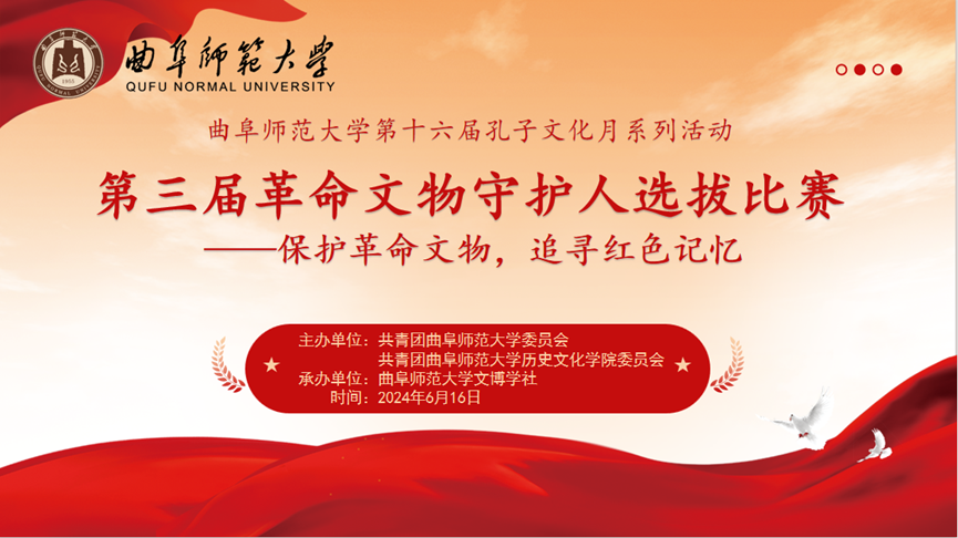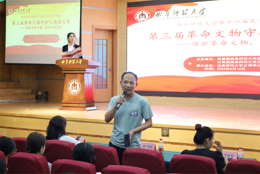 为进一步宣扬革命文物与其所蕴含的革命精神,充分发挥师范生讲解演绎红色文化的专业技能,铭记峥嵘革命岁月,工口动漫 文博学社于2024年6月16日下午在孔子会堂举办了第三届“保护革命文物,追寻红色记忆”文物守护人选拔大赛,本次大赛邀请工口动漫 徐团辉老师作为评审老师。