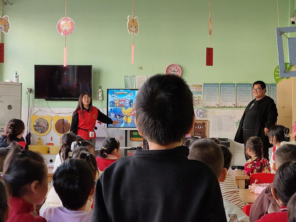 队员们分工明确,有的负责勾勒轮廓,线条流畅而富有童趣;有的则专注于上色,色彩搭配既鲜艳又和谐,每一笔都蕴含着对孩子们未来的美好祝愿。孩子们的欢声笑语和积极参与为创作过程增添了无限的乐趣和动力。孩子们正面的反馈让队员们更加投入地投入到创作中,他们不仅是在完成一项任务,更是在与孩子们共同创造一段美好的回忆。