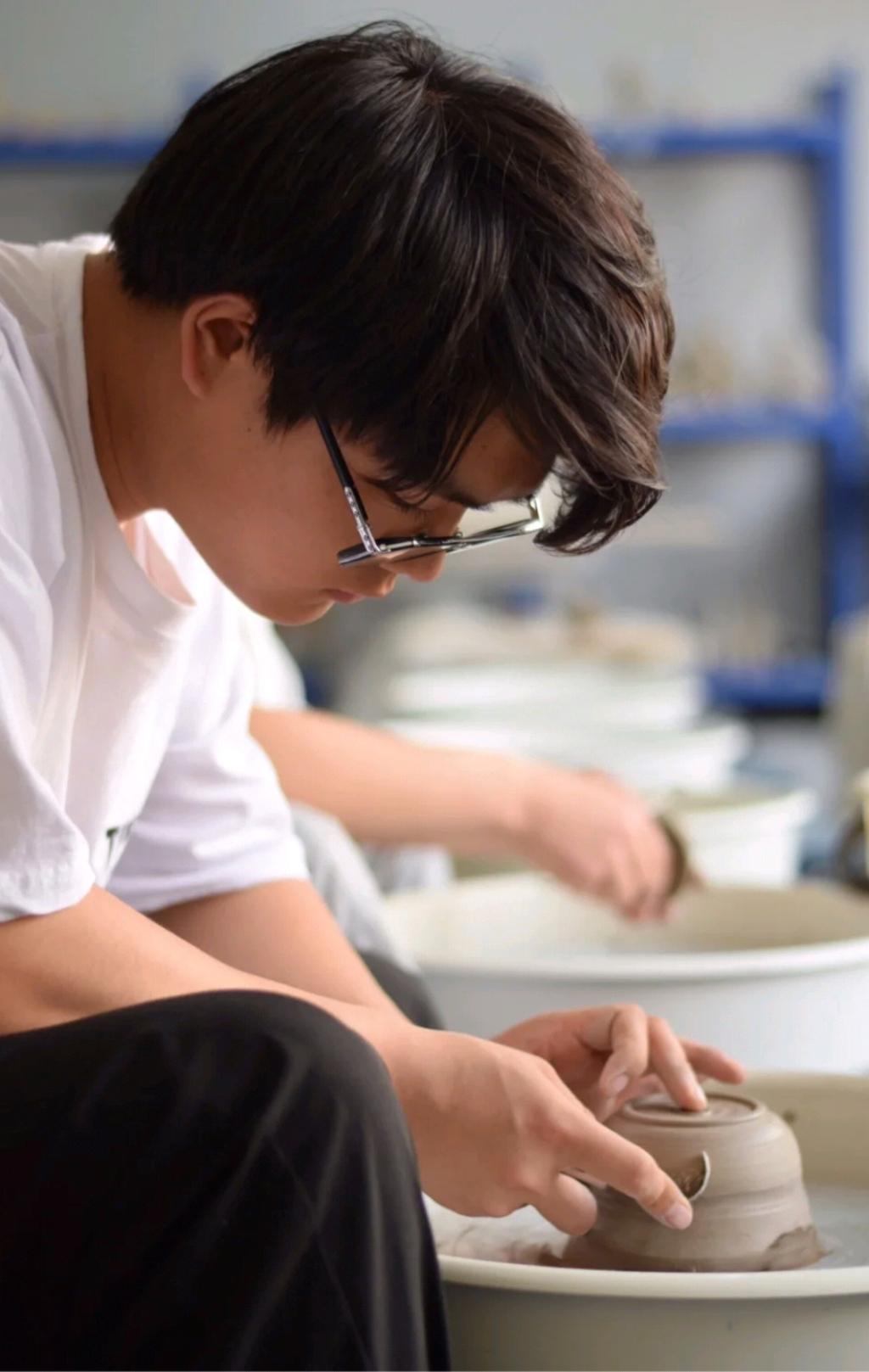实践的第一课,是在专业陶艺师的指导下,学习陶艺的基本技巧与理论。实践队员们从了解陶土的种类与特性开始,学习了揉泥、拉坯等基础工艺。在陶轮前,实践队员们小心翼翼地将泥团置于中心,随着陶轮的旋转,泥团在他们的手中渐渐成形。这一过程不仅考验了实践队员们的手工技巧,更让他们体会到了从无到有的创造之乐。在实践中,队员们学会了如何用心去感受每一粒泥土的温度,如何用双手赋予泥土以生命。