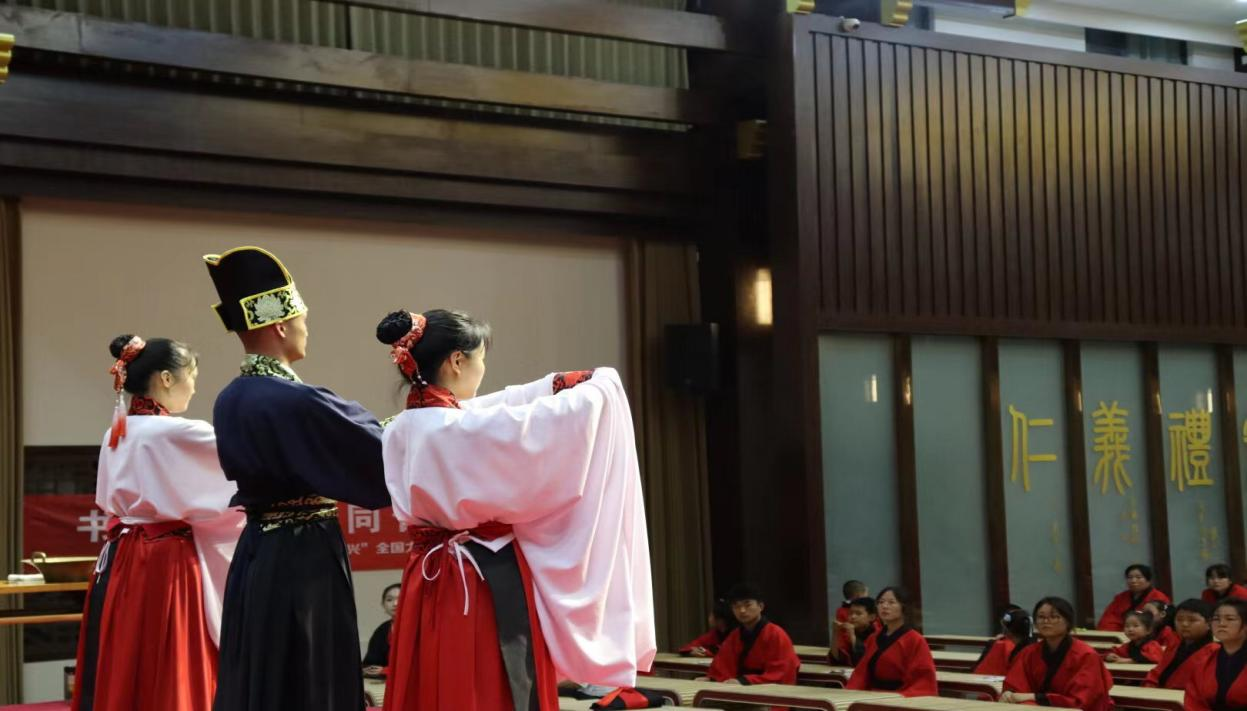 活动当天,校园内洋溢着浓厚的文化氛围。实践队员们身着儒服,以孔子为原型,通过故事讲述、角色扮演、互动问答等形式,将孔子的教育理念和道德观念生动地呈现给学生们。本次活动的亮点之一是实践队员们设计的“孔子游学记”角色扮演游戏。在游戏中,学生们化身为孔子的弟子,跟随孔子周游列国,学习礼仪、探讨学问。此外,“儒家经典诵读”环节,让学生们在诵读《论语》等经典篇章中,感受古代圣贤的智慧。实践队员们还扮演起孔子和师襄,为学生们演绎孔子向师襄请教学琴的故事。有的学生表示从中体悟到学习一门东西要坚持到底,精益求精;也有的学生表示要找到自己热爱的领域并为之奋斗。总的来说学生们从该故事中获得了正能量的启迪,有利于学生们进一步了解孔子及其思想理念。学生们在轻松愉悦的氛围中,学习到了“仁爱”、“礼义”、“诚信”等儒家思想。