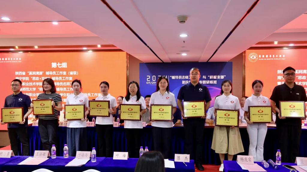 7 月 28 日至 8 月 1 日,“辅导员名师工作室”与“样板支部”建设与发展专题研修班在四川成都圆满举办。此次研修班吸引了全国20余个省(区、市)80余所高校的194名学生工作者参与本次研修活动。其中100家辅导员工作室的主持人、成员代表在活动现场参加了共建授牌仪式,并签署了《辅导员工作室(第二批)联建共建协议》,我院明德敏行辅导员工作室成功入选全国高校第二批辅导员工作室 100 家联建共建单位,并全程参加了研修活动。