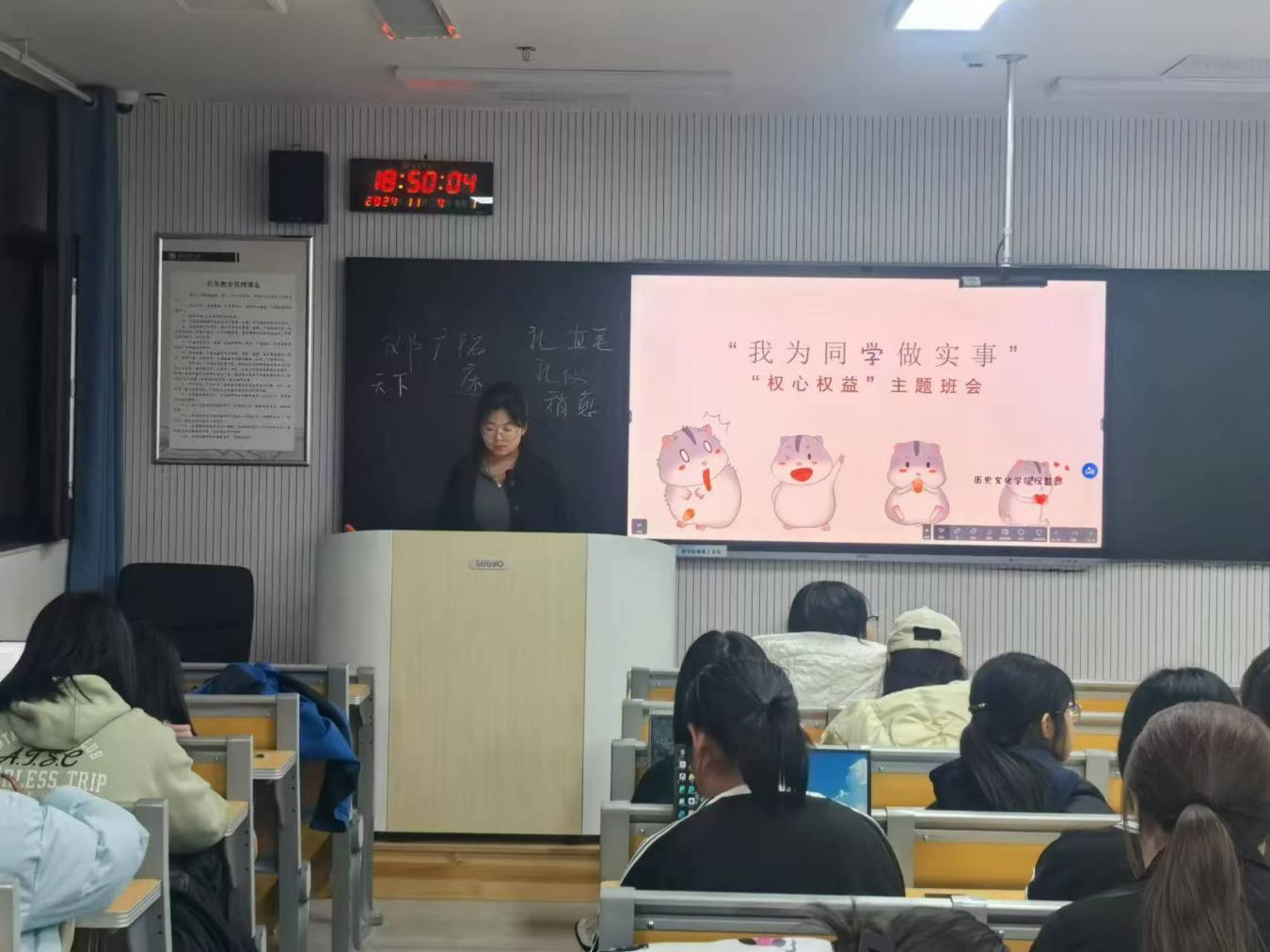 本次班会向大家详细介绍了多个公益实践活动,如“爱心接力,送水暖心”活动、“砥砺前行,暖心相伴”活动等,同时向大家普及了关于诉求解决的多种途径,拓宽诉求渠道,呼吁同学们互帮互助,团结友爱,传递深厚的人文关怀,丰富同学们的校园生活。