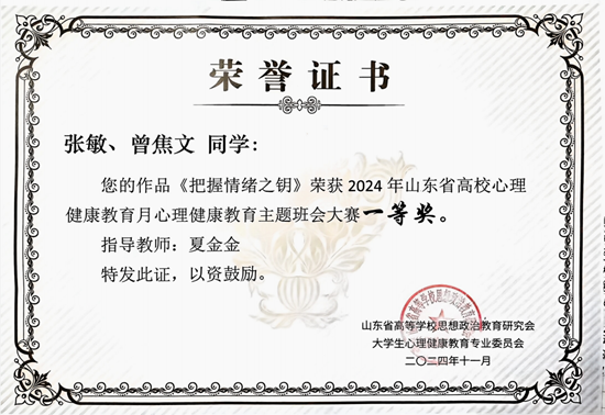 近日,山东省高等学校思想政治教育研究会、大学生心理健康教育专业委员会公布了2024年山东省高校心理健康教育月展示活动的评选结果,工口动漫 在此次评选活动中再创佳绩。