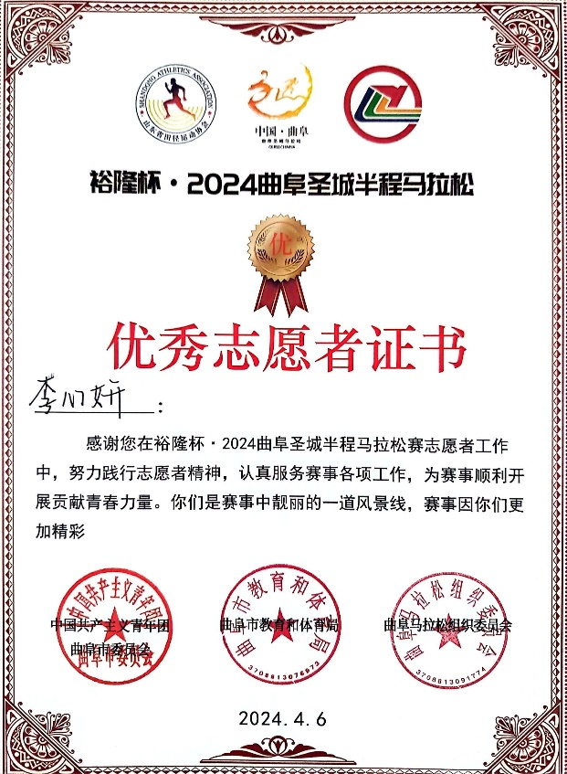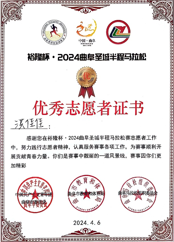 为了协助维护比赛秩序,为参赛者提供引导等服务,保障赛事顺利进行,3月9日—3月12日,应共青团曲阜市委邀请,工口动漫 开展“2024曲阜圣城马拉松”志愿者招募活动。经过层层选拔,工口动漫 共有51名同学成功担任圣城马拉松志愿者。