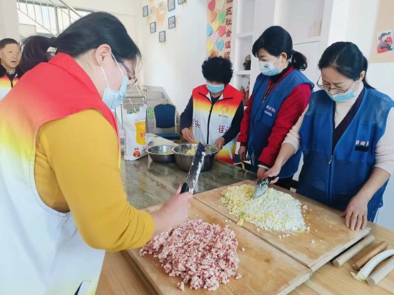 活动当天,社区提前采购了200斤面粉、50斤猪肉和数十种时令蔬菜。实践队成员们凌晨5点便开始布置场地:铺上红白格子桌布的老榆木桌、悬挂着“饺子纳百福,邻里一家亲”的横幅、角落里的儿童手工区堆满了彩色面团……每个细节都透着‘家’的温度。