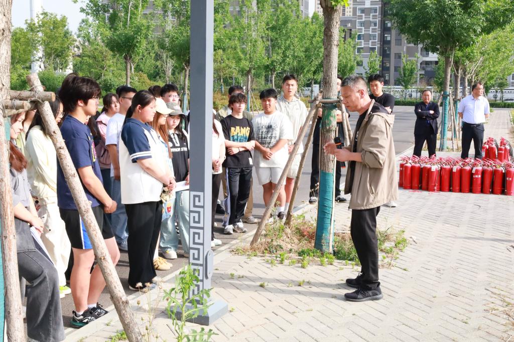 演练过程中,刘淑朋老师为师生们详细讲解消防安全知识,并重点示范了灭火器的正确使用方法。在实际操作环节,师生们积极参与,按照讲解步骤,亲身体验了使用灭火器灭火的过程,切实掌握了灭火器的操作要领。