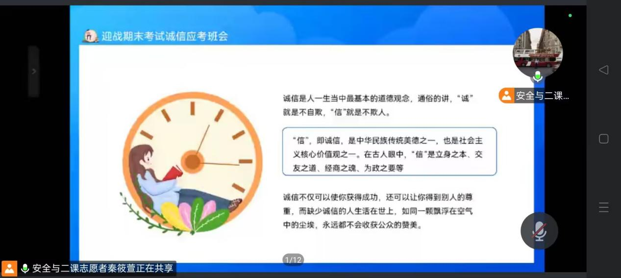 本次“诚考笃行,信筑前程”诚信主题教育活动的顺利开展,以线上宣讲为载体,以互动承诺为抓手,为营造公平公正的考试环境注入了强大动力,在同学们心中种下了诚信应考的种子;不仅强化了同学们的诚信意识和纪律观念,还为大家提供了学习考试规范和诚信准则的平台,激发了大家对诚信品质的追求,助力同学们在期末考试中展现良好的学风考风,以诚信之姿奔赴理想前程。