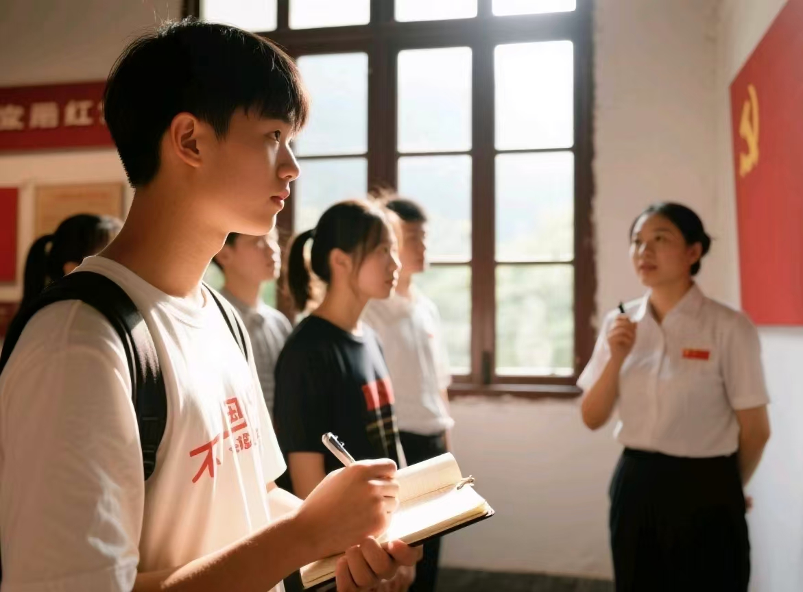 在参观过程中,队员们不放过任何一个细节。有的队员凑近展柜,仔细观察与张富清战斗经历相关的展品,试图从这些陈旧却珍贵的物件中,触摸那段波澜壮阔的历史;有的队员则相互轻声交流看法,分享自己对张富清英勇无畏精神的理解。