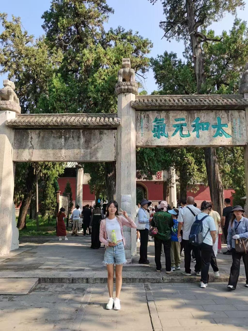 实践队一行踏入孔庙,首先映入眼帘的便是那庄严肃穆的棂星门,其精美的石雕工艺令人叹为观止。穿过棂星门,沿中轴线前行,依次参观了圣时门、弘道门、大中门、同文门,每一道门都仿佛在诉说着不同的历史故事。大成殿内,孔子的塑像威严而慈祥,四周供奉着“四配”“十二哲”的塑像,实践队员们怀着崇敬的心情,向先师行礼,感受着儒家文化中尊师重道的精神内涵。