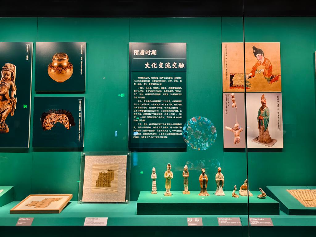 在宗教文化展区,实践队员通过文物与史料的系统呈现,清晰看到新疆宗教发展的多元轨迹。展厅中央,佛教、伊斯兰教、基督教等不同宗教的文物有序陈列,却不显突兀。公元5世纪的龟兹石窟壁画残片上,飞天形象线条流畅,展现了佛教艺术在西域的辉煌;而旁边的清代伊斯兰教经堂教育课本,其装帧形式借鉴了中原书籍的线装样式,体现了宗教文化与本土文化的结合。