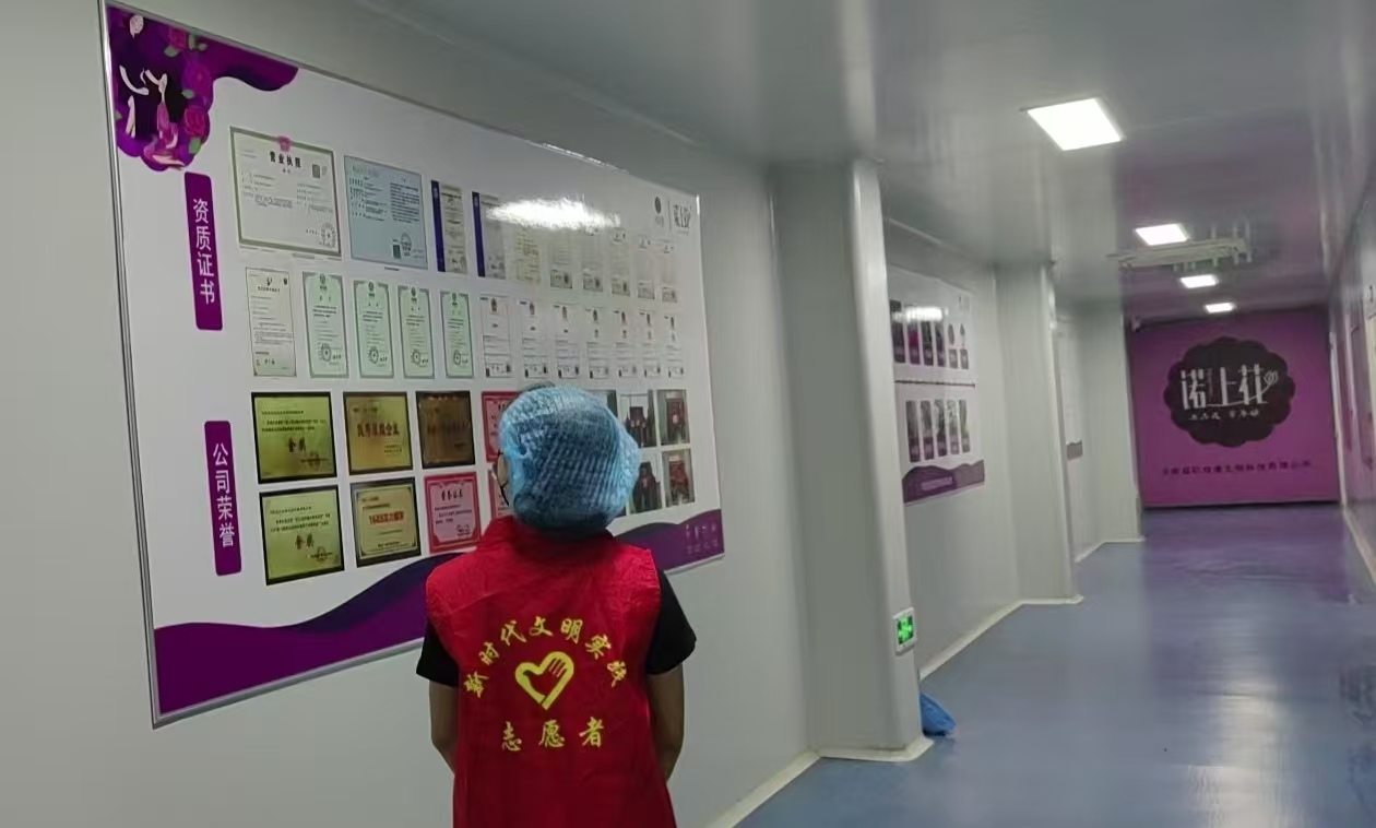 参观途中,实践队员们偶遇监管部门对企业进行检查。他们安静跟随其后,在透明参观走廊,看着监管人员仔细查看生产环境、检测食品质量,把控生产细节,查看工人们是否严格佩戴卫生帽、口罩,操作设备时有无遵循标准化流程,还不时用手持设备测量车间温湿度,询问质检员关于成品检验的抽样比例、判定标准。监督活动使实践队员们认识到玫瑰食品直接关系消费者健康,生产环节一丝一毫都不能马虎,这不仅是对市场负责,也是乡村产业得以长久发展的口碑。乡村产业要走得远,离不开这样的规范监督。