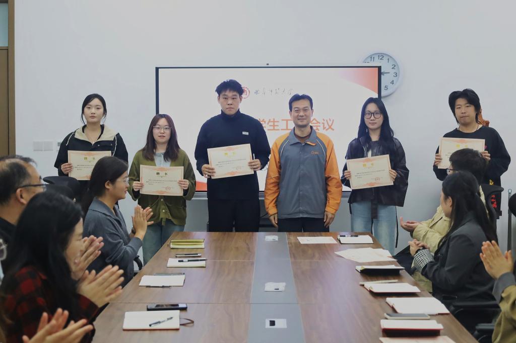 会上,王建阳就新学期学生工作作出系统安排和部署。他强调,学生安全工作是前提与底线,思想引领是基石,日常管理是维护稳定的生命线,学风建设是成才成长的核心,必须将这几项核心工作抓牢、抓实、抓好,为学生成长成才奠定坚实基础。同时,王建阳也直面当前宣传工作短板,针对宣传问题提出优化要求,助力提升宣传工作实效。会上团委书记刘贤贤与研究生辅导员孙锋为辅导员助理颁发聘书,为新学期学生工作筑牢人员保障。