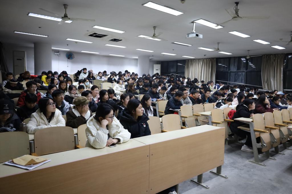 讲座中,主讲教师深入剖析了当前四六级考试的命题趋势与备考要点,并结合典型真题案例,传授高效解题技巧。此外,老师还就备考期间可能面临的心理压力提供了实用的调适建议,帮助同学们缓解焦虑、增强信心。