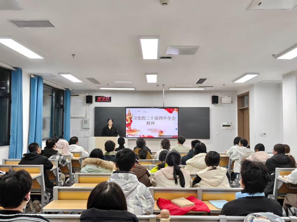 会上,刘贤贤围绕党的二十届四中全会精神展开全面解读,梳理了“十四五”时期我国在经济、科技、综合国力等领域取得的标志性成就,以《中共中央关于制定国民经济和社会发展第十五个五年规划的建议》为核心,深入阐释“十五五”时期的战略价值,结合青年实际解读“加快高水平科技自立自强”等重点部署,引导学员明确个人理想与国家发展的结合点。互动交流环节,学员踊跃分享感悟,大家普遍表示将以党的二十届四中全会精神为指引,把重心放在专业钻研与实践能力提升上,主动参与学科竞赛、乡村振兴调研等活动,在国家重点领域践行青年担当。
