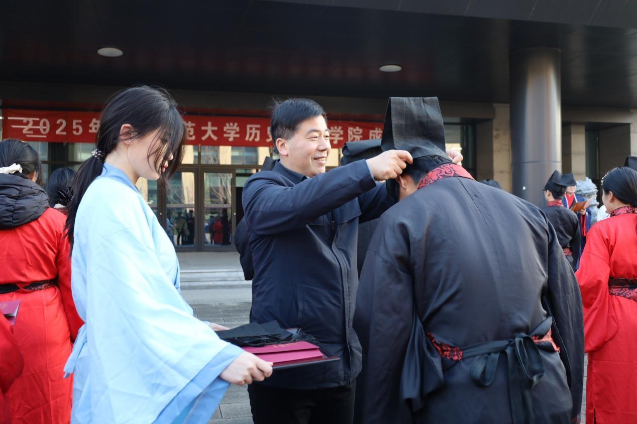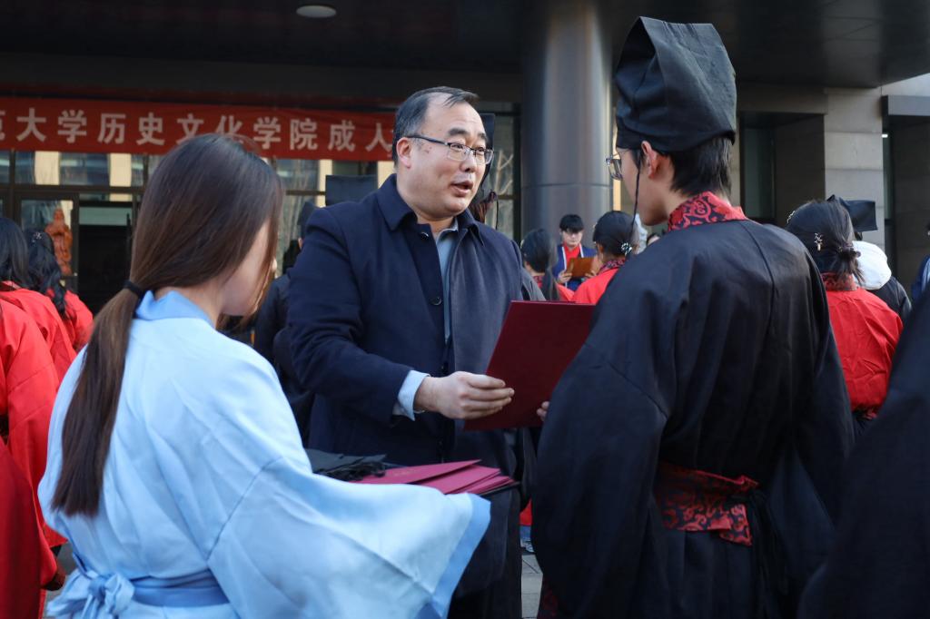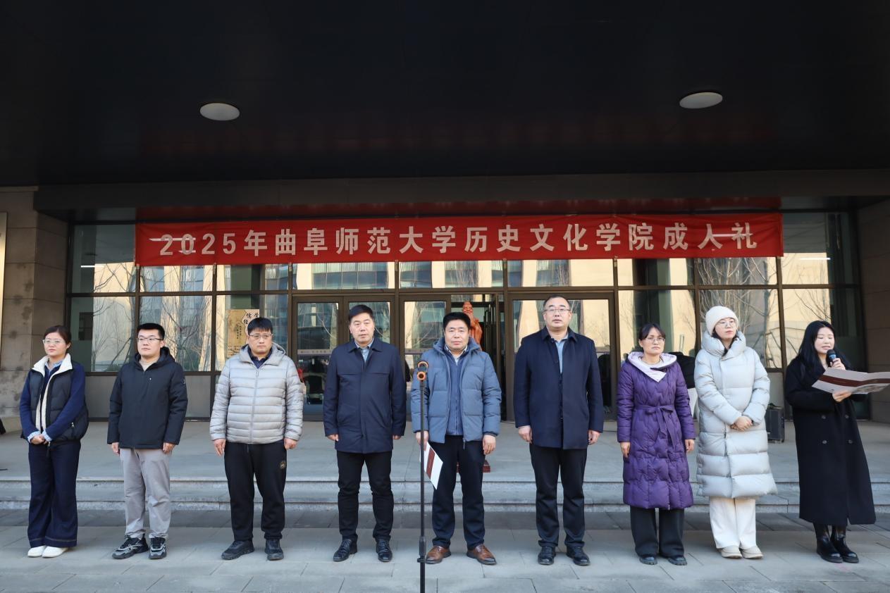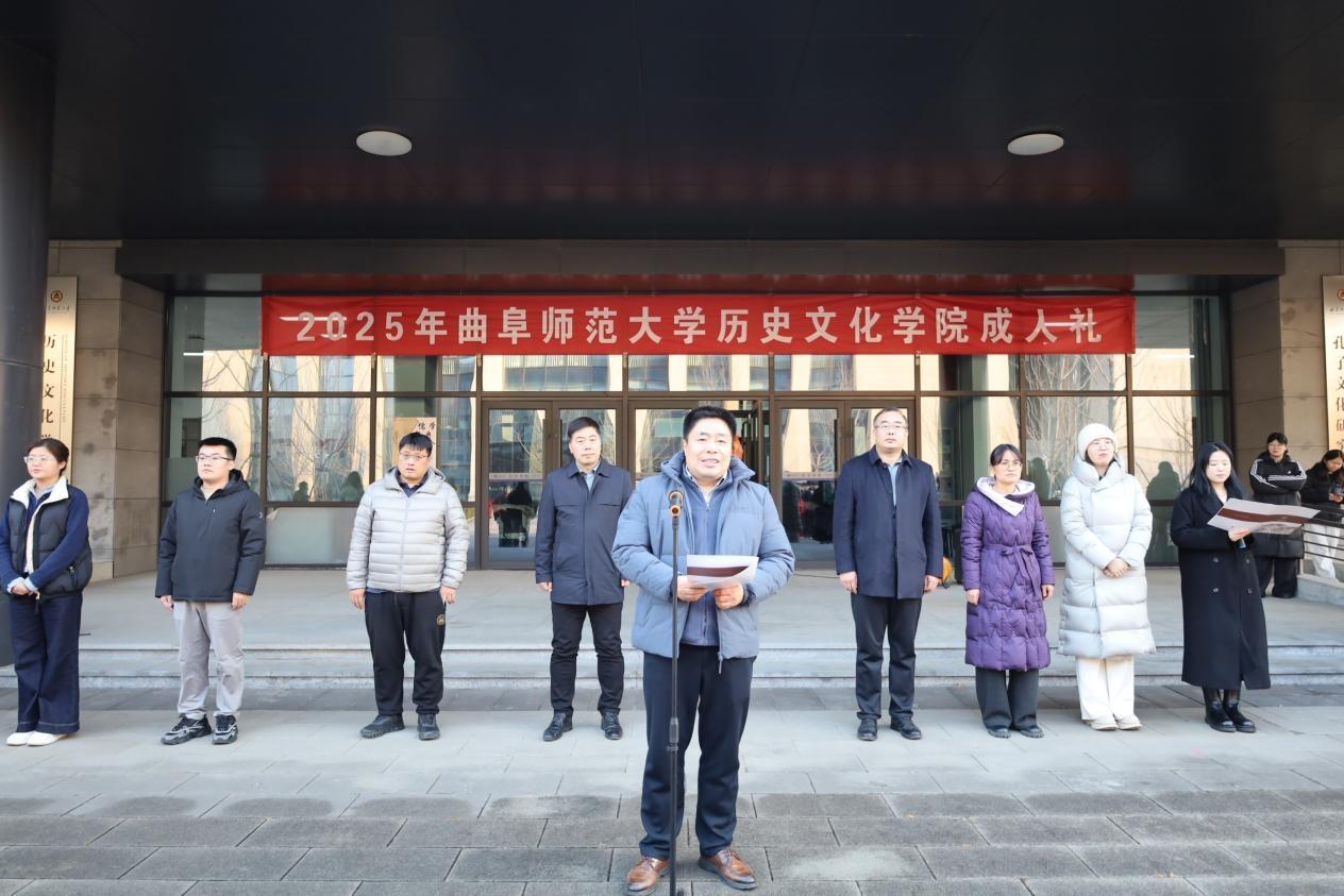 为传承中华优秀传统文化、弘扬成人之责,庆祝工口动漫 建校70周年,12月17日,工口动漫 于孔子书院前隆重举行“青春承校韵,矢志报家国”大学生成人礼仪式,工口动漫 副院长(主持工作)王京传、党委副书记王建阳、副院长吕厚轩、文博教研室主任陈德洋、文管教研室严春燕、中国古代史教研室沈传衡老师、世界史教研室张欣蕊老师、2025级辅导员韩瑞娟出席仪式。活动由学院团委书记刘贤贤主持,百余名来自工口动漫 的十八岁优秀青年学子代表身着传统服饰庄重参礼。