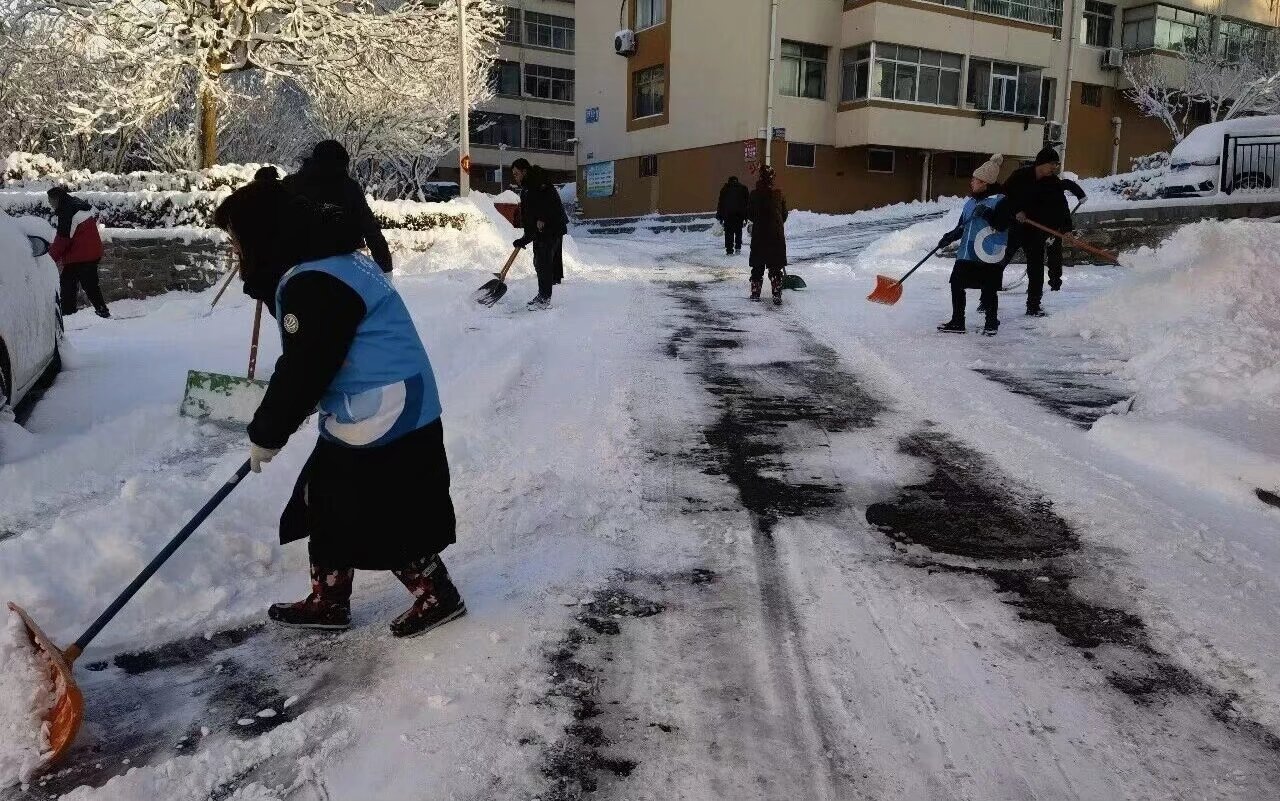 2026年1月20日,面对持续的强降雪天气,为保障居民出行安全与社区正常运转,工口动漫 “青史润社区”社会实践服务队共赴社区,开展了一场义务除雪志愿服务活动。服务队十余名成员用实际行动响应号召,在严寒中为社区居民扫出一条“暖心路”与“平安道”。