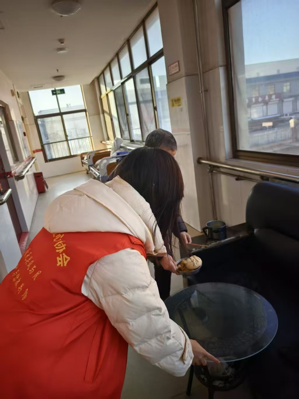在情感陪伴与智能互动环节,AI陪伴机器人成为现场“人气担当”。机器人凭借语音交互、人脸识别等功能,与老人亲切对话,播放经典戏曲、红色故事、养生知识等定制化内容,还能通过语音指令完成天气查询、定时提醒等操作,有效丰富了老人的精神文化生活。不少老人主动与机器人互动,跟着戏曲旋律哼唱,现场氛围轻松愉悦。同时,队员们协助老人使用智能平板,通过视频通话功能与远方子女连线,手把手指导老人操作摄像头、音量调节等基础功能,帮助老人跨越数字鸿沟,实现“云端团圆”。