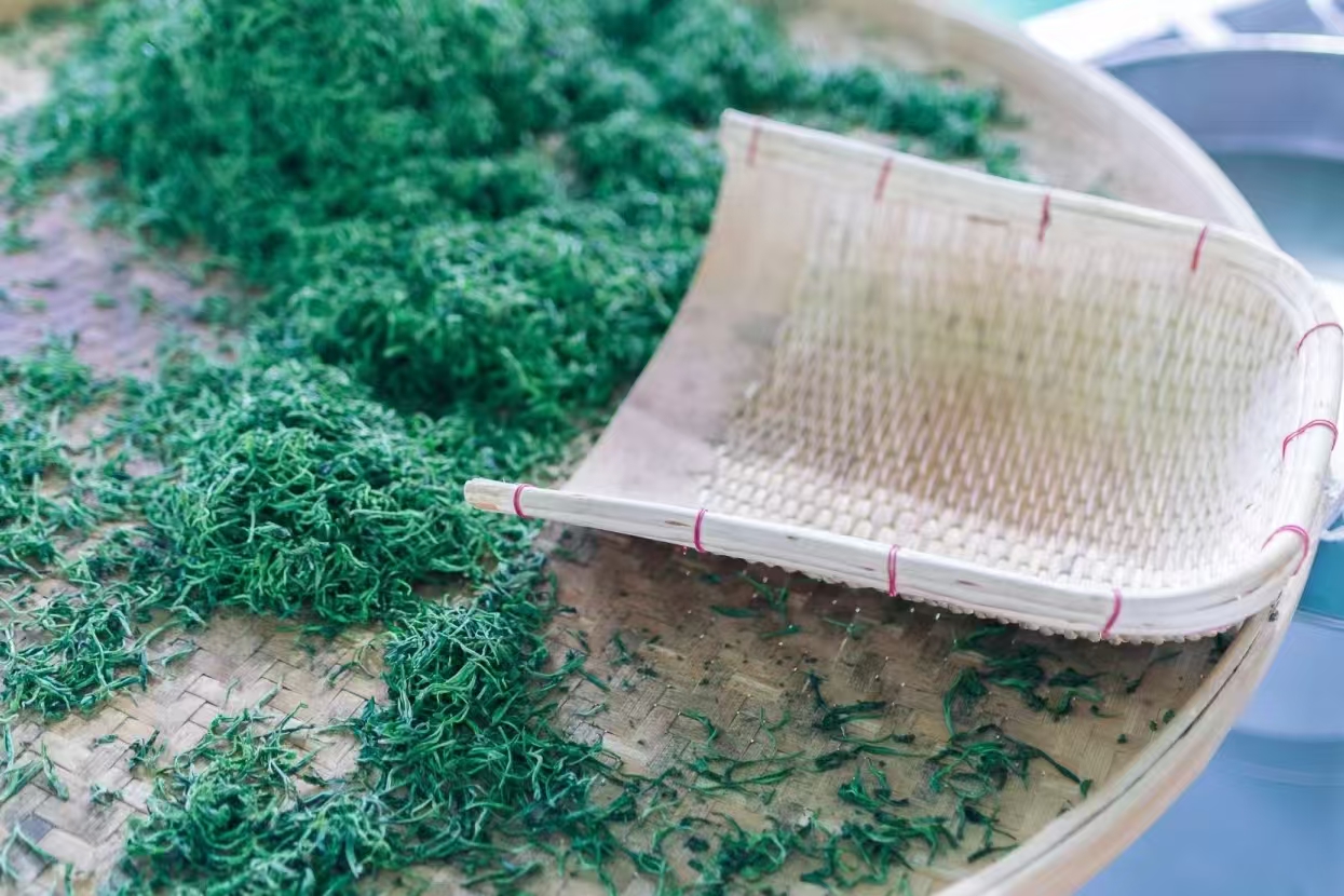 图为茶叶制作车间中杀青后茶叶。张韵阁 供图揉捻环节,队员们效仿师傅手法,有节奏地对茶叶施加压力,观察其在手中逐渐形成条索状的形态变化,反复对比自身作品与师傅成品的差异,不断调整力度与节奏;干燥车间里,大家协助工人将揉捻后的茶叶均匀铺展在烘干机上,精准设置温湿度参数,每隔一段时间便触摸检查干燥程度,实时微调确保茶叶达到最佳品质。全程参与让队员们不仅掌握了制茶核心技艺,更对 “匠心制茶” 的精神有了深刻领悟。