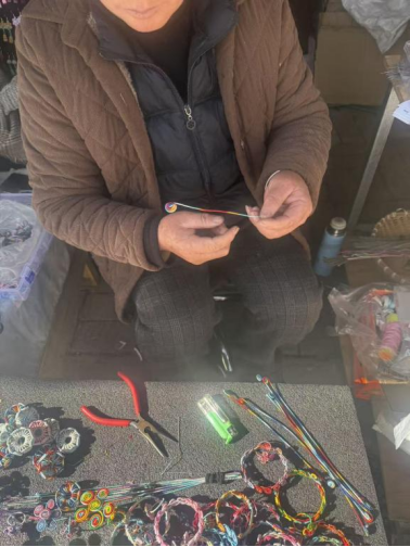 活动另一亮点是学习摩梭人传统的转运珠编制技艺。五彩丝线在摩梭匠人手中宛如被赋予生命,编织成寓意吉祥平安、幸福美满的精致手链。实践队员们围坐在匠人身旁,仔细观察编织手法,从选线、起头到编织吉祥结,一步步跟随学习。起初手法生疏,丝线易缠,但在匠人耐心指导和队员相互协助下,逐渐掌握要领,编织出虽略显稚嫩却充满诚意的作品。队员们还将学习心得与社区感兴趣的居民分享,共同体验指尖穿梭的乐趣。一根根丝线,串联起的不仅是美丽的饰物,更是对摩梭文化中美好祝愿的理解与传递,促进了不同民族间手工艺文化的交流与欣赏。