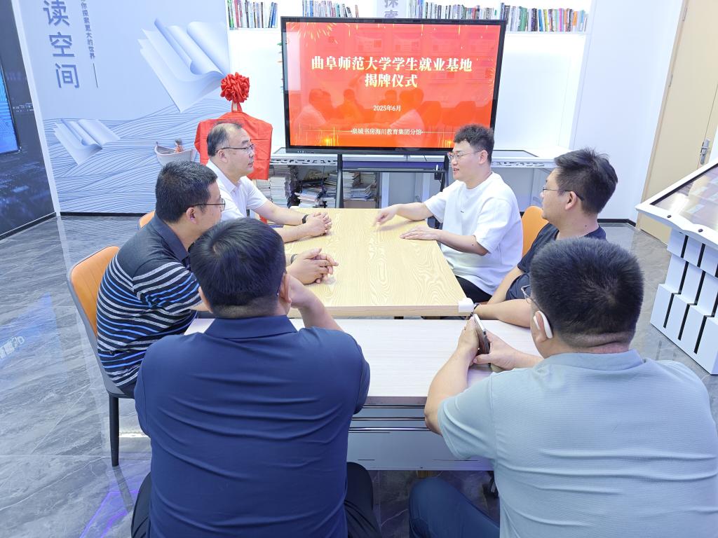 交流中,学院与合作企业就毕业生就业、人才培养体系构建、实践教学基地建设、课程共建开发等内容进行了广泛研讨与深度对接。之后,学院与济南高新区书香校园文学发展中心建立学生就业基地,王建阳与企业负责人周兵共同为就业基地揭牌。