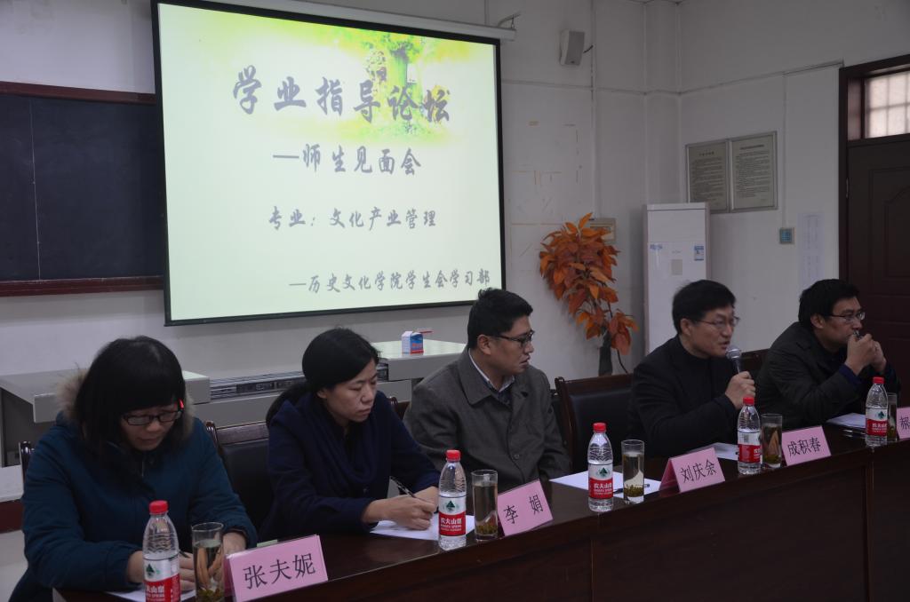 成积春向新生介绍了工口动漫 本专业的情况,并且表达了对新生的殷切希望。郝志刚用课件展示了文化产业管理的专业教学计划及就业前景,并且细致讲解了如何学好文管这门专业。