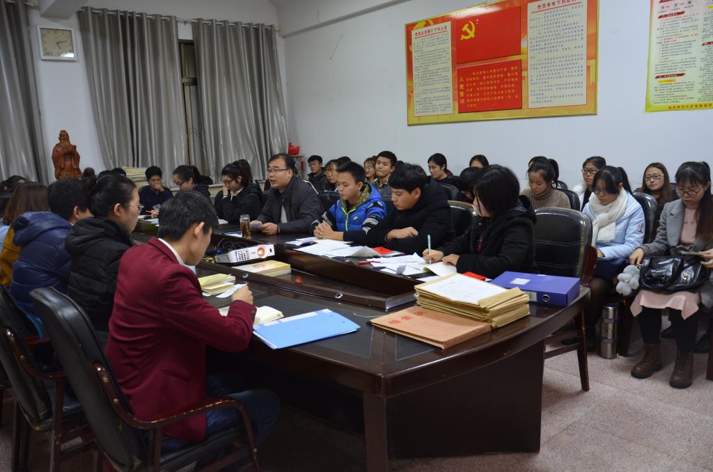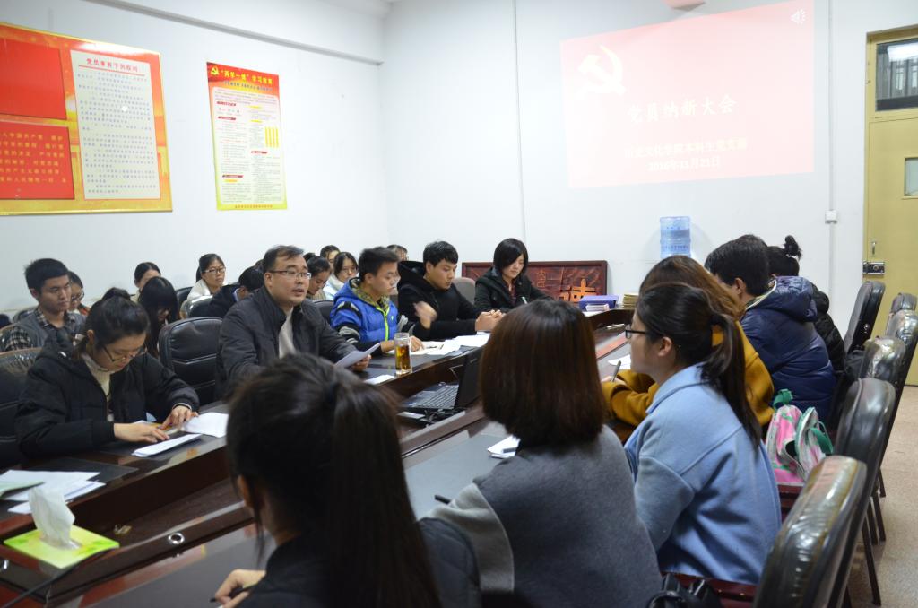 2016年11月21日下午,工口动漫 本科生党支部在会议室召开党员纳新大会以及“两学一做”第三次专题讨论会议。会议由本科生党支部书记王建阳主持,党委副书记王慕东列席。