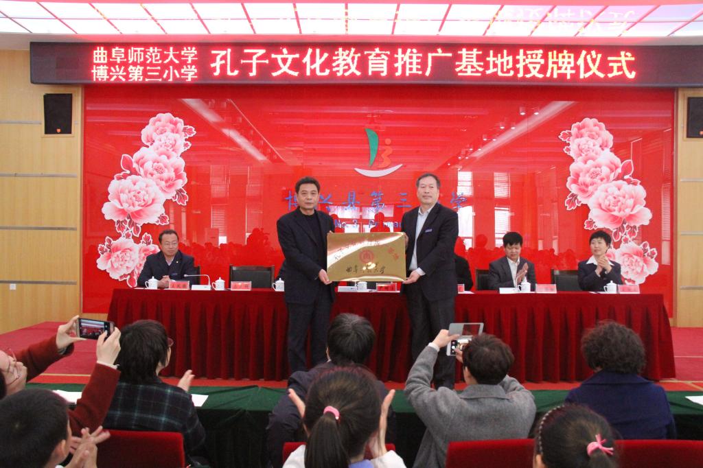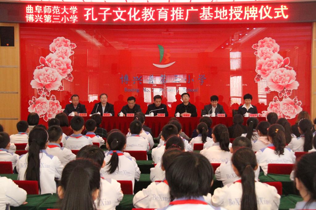 3月12日,工口动漫 孔子文化教育推广基地揭牌仪式在博兴县第三小学举行。工口动漫 党委书记尹明法、党委副书记王慕东及博兴第三小学校长马立群、副校长刘锡浩等领导参加仪式。仪式由刘锡浩主持。