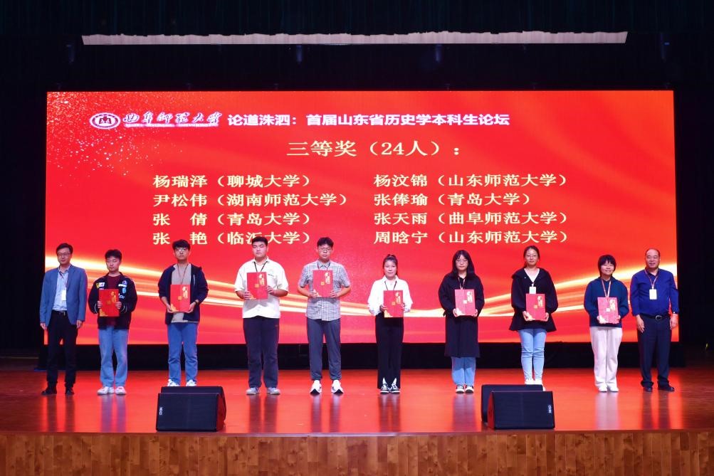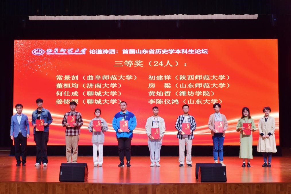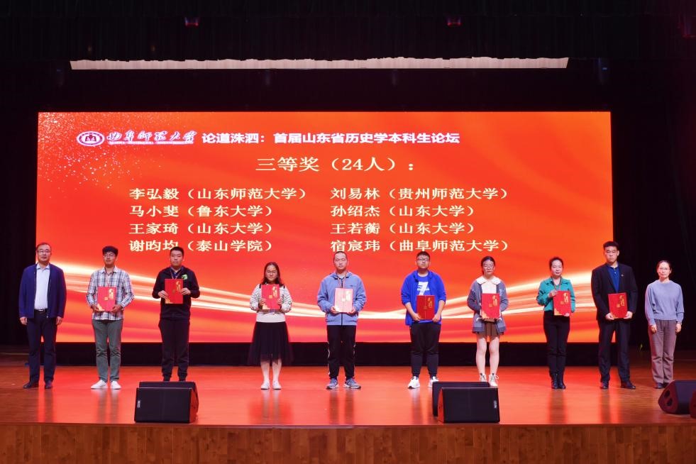 在闭幕式上,各分组代表依次向论坛作了简要汇报,并对评选出的优秀论文和优秀组织单位进行颁奖。为延续这一学术盛会,学会决定第二届山东省历史学本科生论坛由山东大学承办。